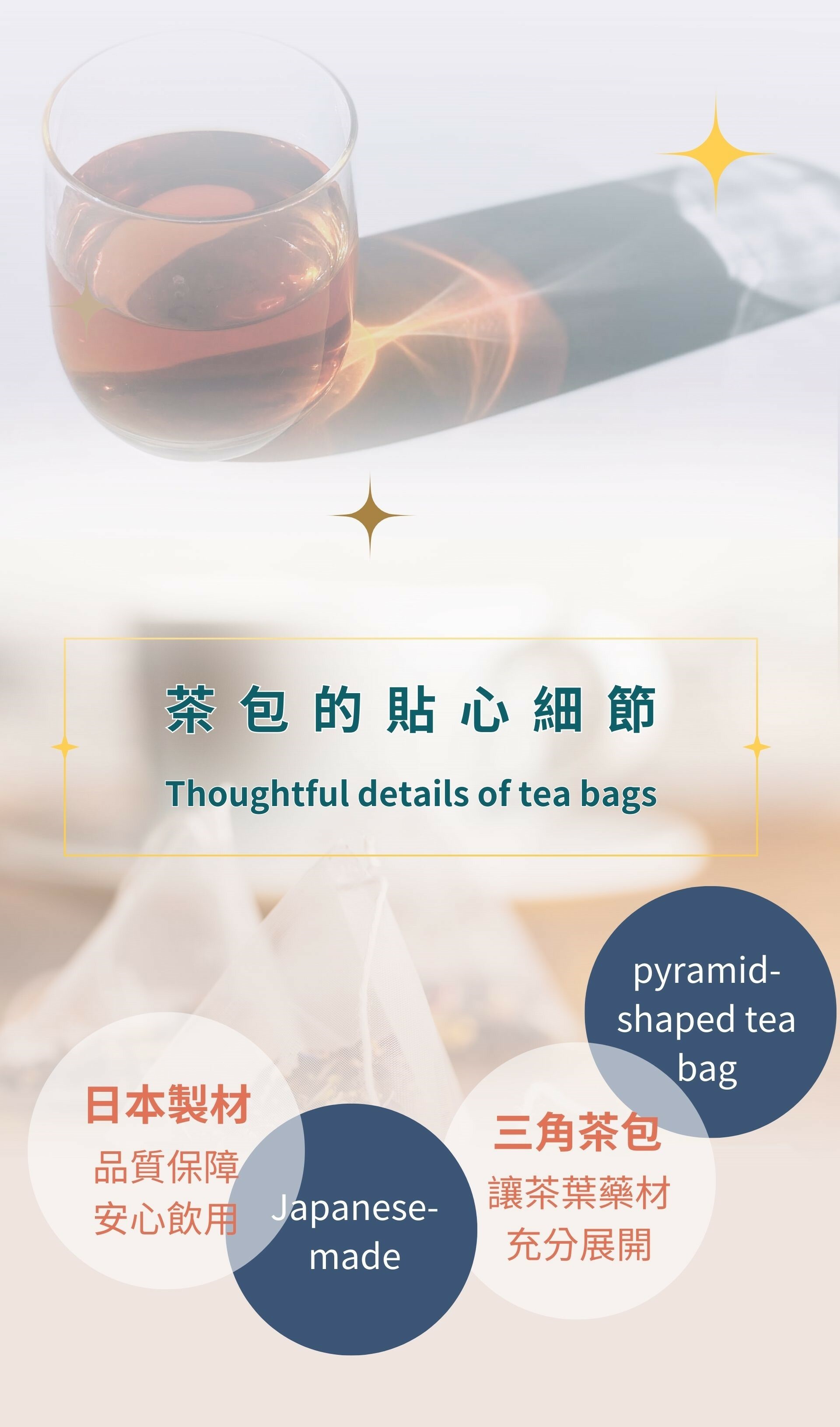 台灣加工製造,填充至日本製作同樣通過SGS檢驗的三角茶包裡,
