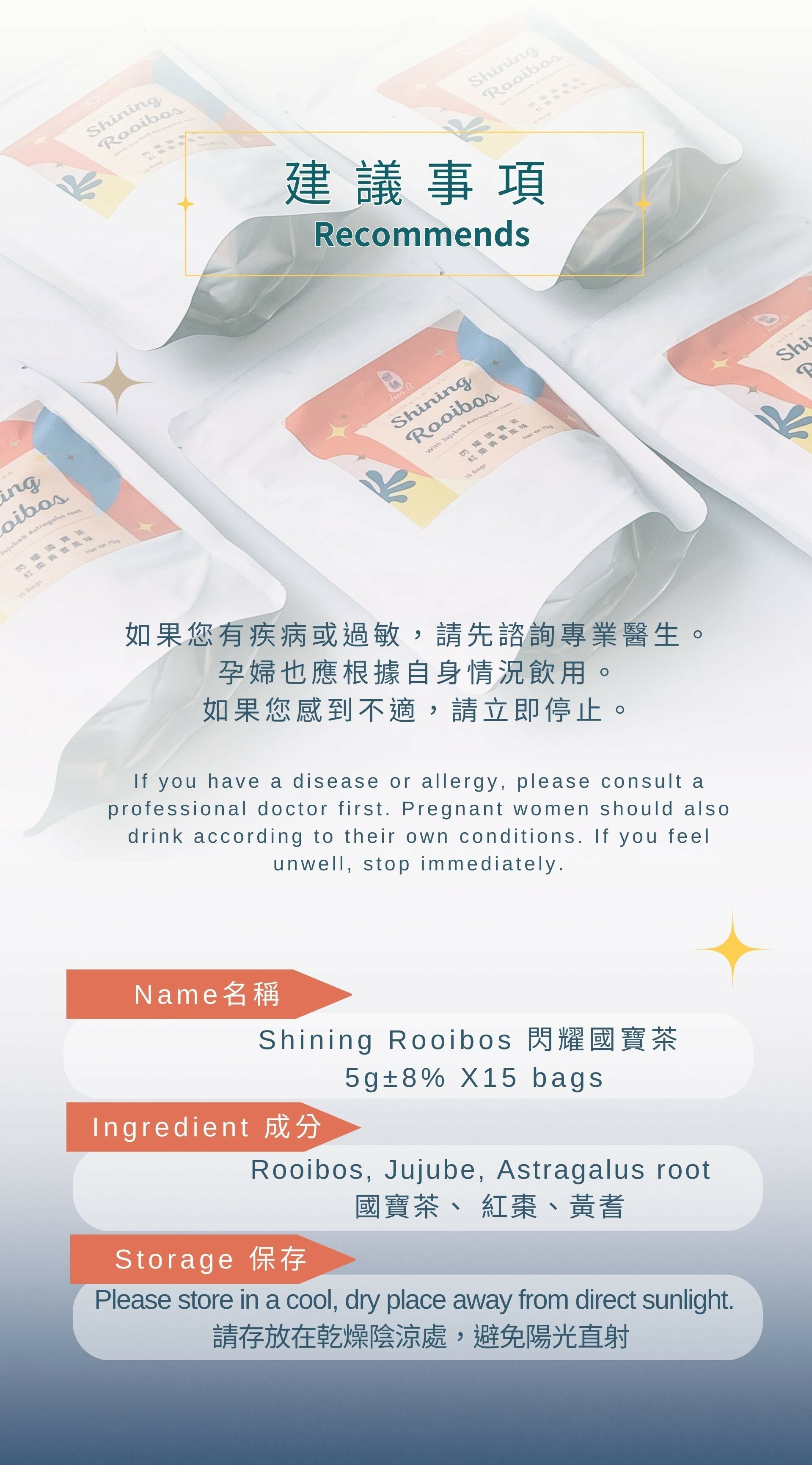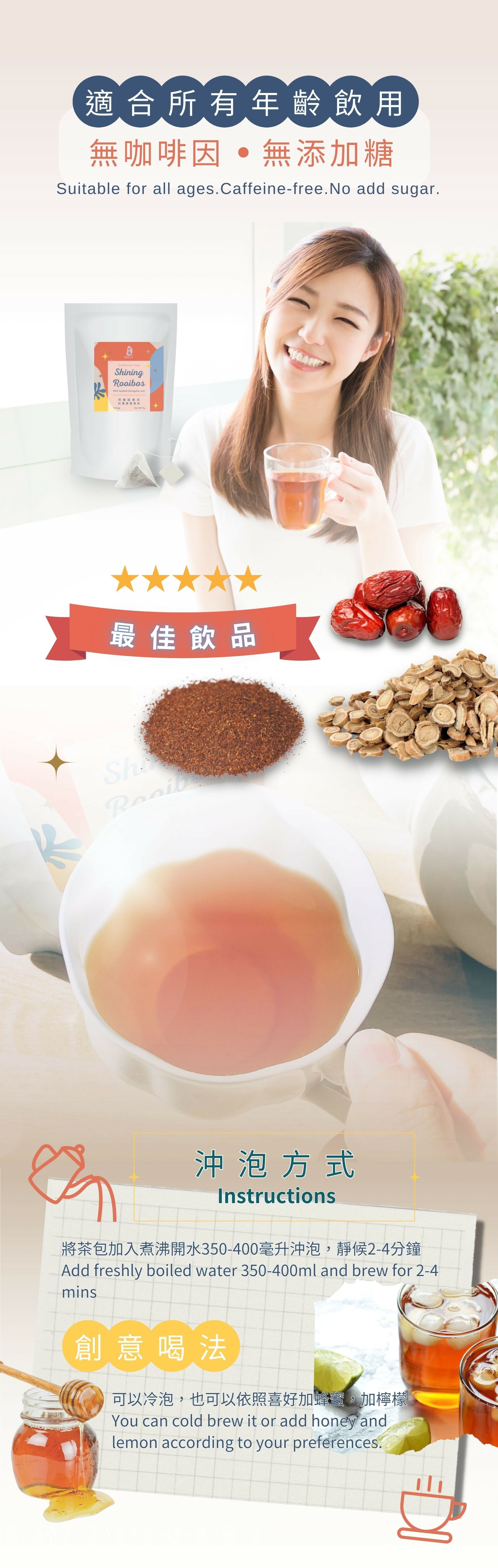 不含添加劑和防腐劑,不含咖啡因適合所有年齡層的人飲用,孕婦和哺乳期婦女(請視個人情況諮詢醫生意見)。