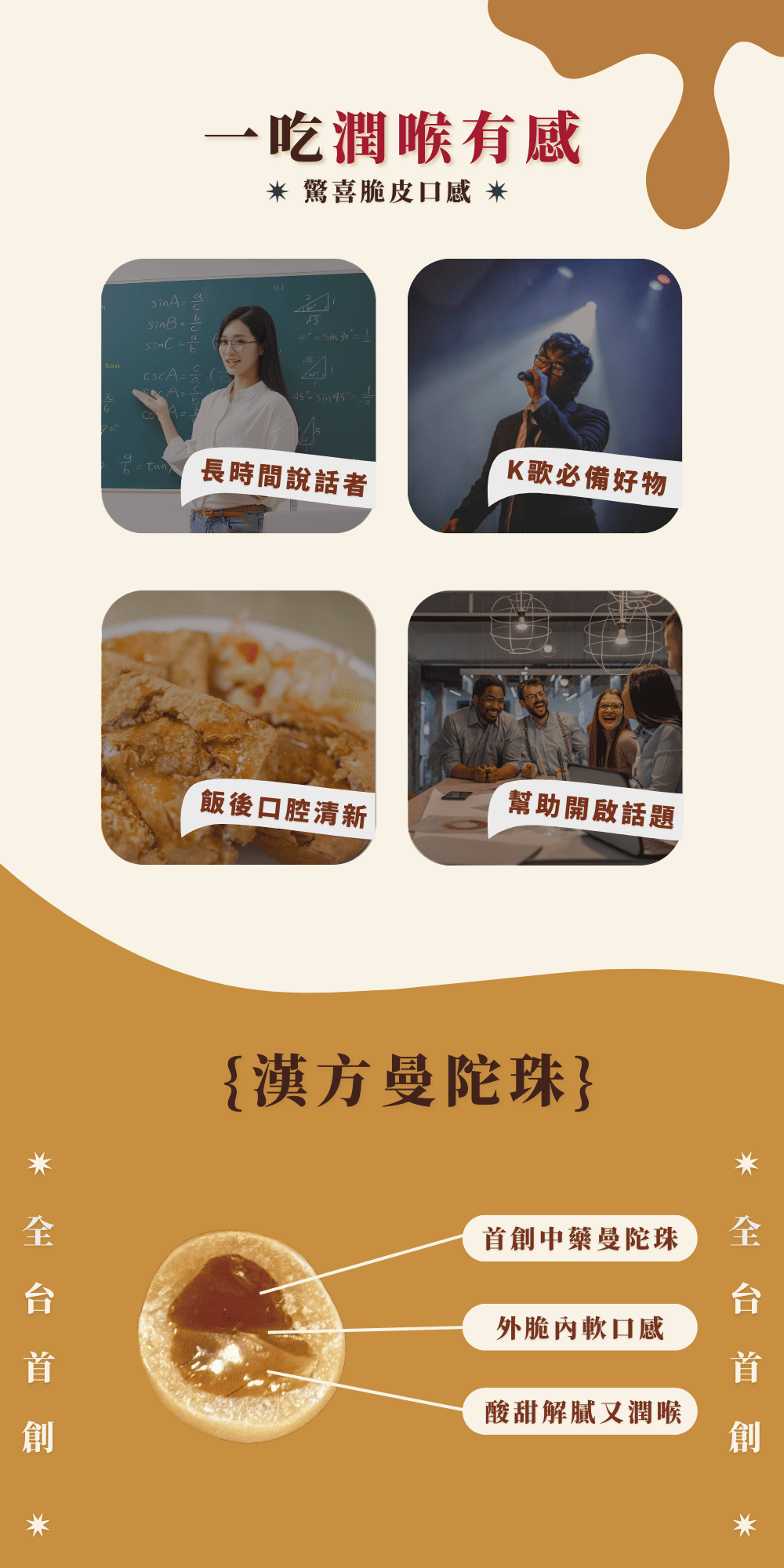 ✔️ 首創漢方曼陀珠,驚喜脆皮口感