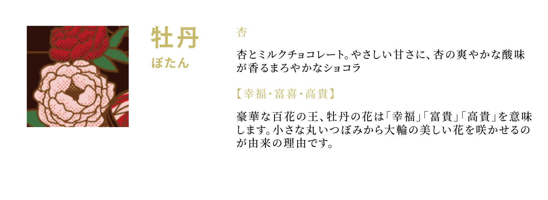 杏與牛奶巧克力的搭配,溫柔的甜味中帶著杏子清爽的酸香,口感圓潤細緻。